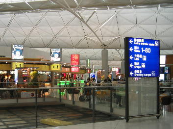 | 3時間ほどかかって香港に着きました。 | この空港は広くて端から端まで行くのに時間がかかります。 |