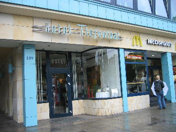 | アンデルセンさんのお店まで通うときに泊まっていた ティーフェンタール・ホテル。隣のマクドナルドもよく利用しました。 |