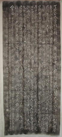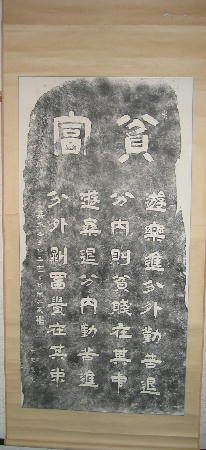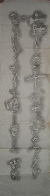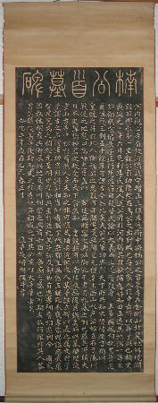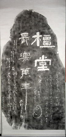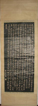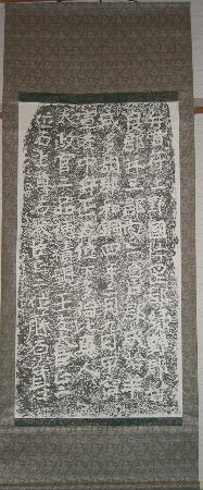 | 孝経序碑 軸 縦 約341cm 横 約117cm 画 縦 約297p 横 約106.5cm 阿育王寺碑と孝経序碑の軸は長いので写真は合成しています。 |