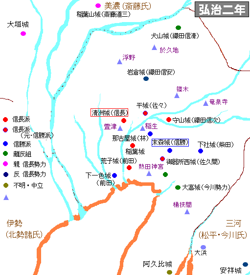 信長の従兄弟である織田信清(犬山城)との仲も疎遠になり、尾張北部は次第に信長の支配下を離れ