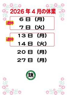 栃木県那須塩原市 寿司 うなぎ 宴会 和食店 忘年会 新年会 法要など 割烹 錦鮨 |