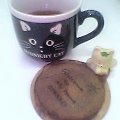 事務員さま作むぎ茶(笑)が入っておりますのは ”MIDNIGHT CAT”マグ。 そのマグを受けておりますのは ”Welcome to My home BIWAKO”コースター。 かな〜り年季が入っておりますな。(^^ゞ