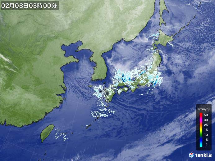今は春分(しゅんぶん)の季節です。 今冬最強の寒波が到来し、7日(土)の昼からみぞれか雪になる予報でした。しかし、積もるに至りませんでした。翌朝3時頃は雨でしたが、やがてみぞれとなり4時過ぎには雪となりました。この時の雨雲は日本海側から関東に来たものです。