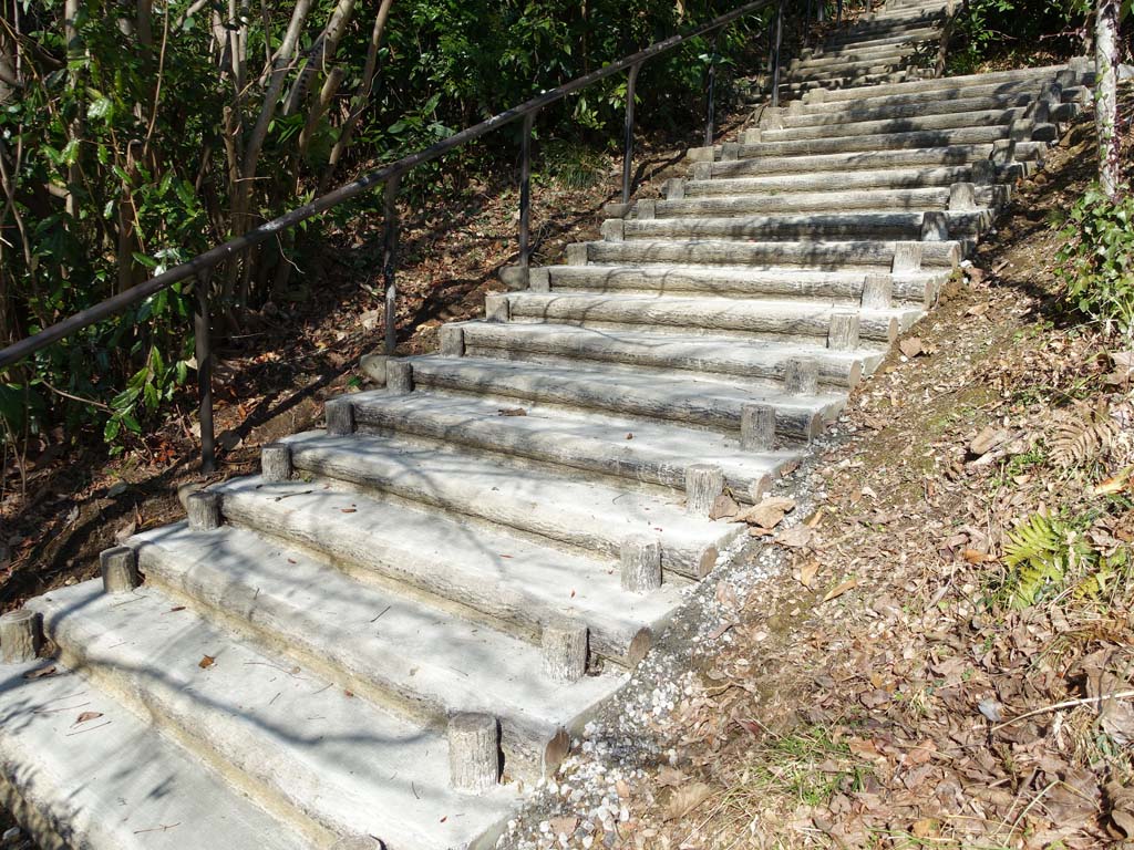 先日(2/12)に金沢自然公園の梅林を見に行きました。早咲きの梅はその花期を終え、中生(本番)の梅が咲き始めていました。後、1週間で見頃となるでしょう。梅林を抜けてバーベキュー広場に行くと、工事の車が入り何かをしているようでした。そこからなんだろ坂を下りました。坂の麓に近づいたとき、この坂にある階段の改修が行われていることを知りました。その階段とは3本ある階段の1つで、今まで土がほぐれて階段の縁の棒の上をアクロバット的に歩かざるを得ない状態で、危険でした。その改修を勧めて数年たちました。その間、転んだ人が出なかっただけ、公園の責任者にとって幸運だったと言えます。