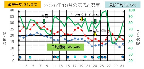 晴れ:9日 曇り:9日 小雨:3日 雨:10日 夏日:15日 真夏日:1日 |