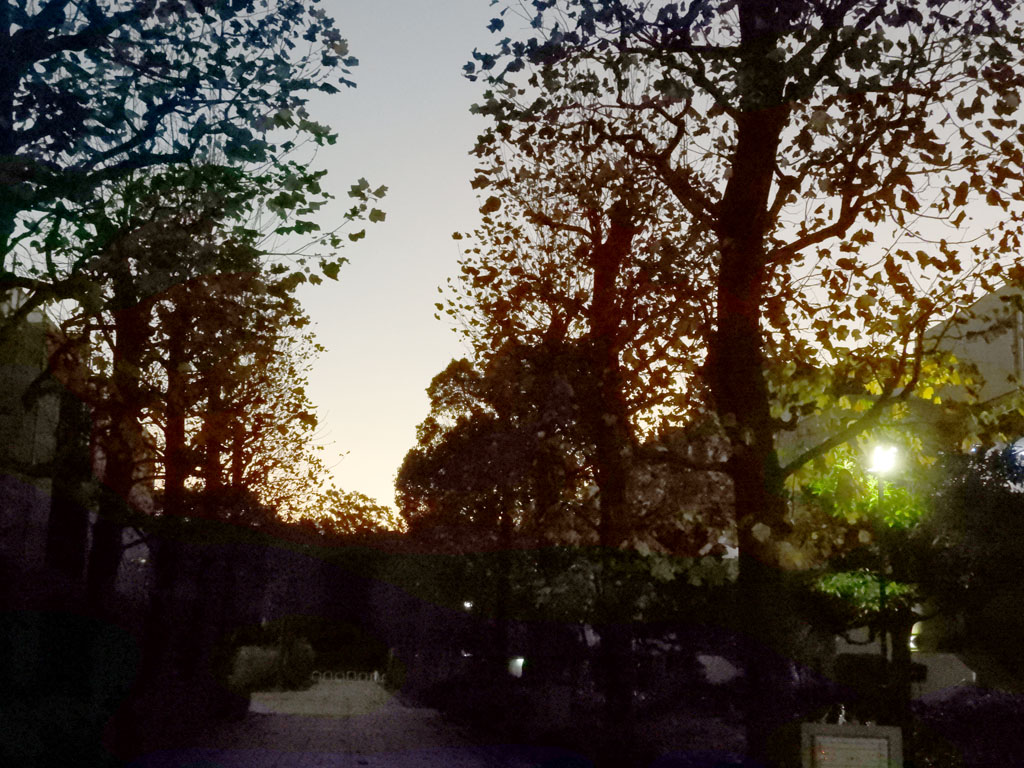 今は小雪(しょうせつ)の季節です。暖かい小春日和が続いています。11月に入ってから北よりの風の世界です。しかし、たまに南寄りの風が吹きます。最近11月28日に南風が吹き、下に示す街路樹のユリノキや外環道路のイチョウ並木の紅葉が吹き飛ばされました。更に12月1日にも南風が吹き、散り残った葉を落とし、今やそれらの落葉樹は冬木立となりました。