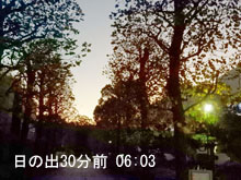 左は11月30日の朝、ゴミ出しに行った帰りに見た夜明けの風景です。東の空は明るくなり日の出の近いことが分かります。ちなみにこの日の日の出時刻は06:31でした。その空に牛飼い座のアルファ星であるアークトウルスが見えていました。