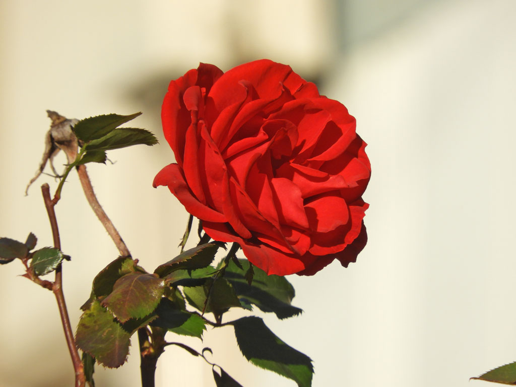 冬のバラ 2025/12/18 福浦1 弱い冬の日に照らされて赤いバラが誇らしげに咲いていました。しかし、葉は寿命と寒さで萎れて枯れ始めていました。 冬バラは 去りゆく年の 名残りなり 孤老 |