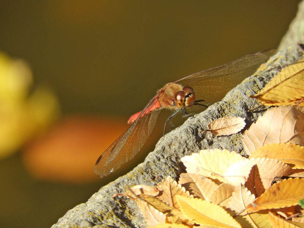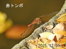 この時、不動池の日当たりの良い岸で赤トンを数匹見つけました。大きなトンボの目に純真さを感じました。それは純真な子供たちが歌う「とんぼのめがね」の歌を連想させました。