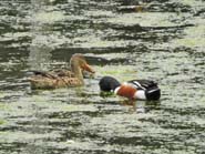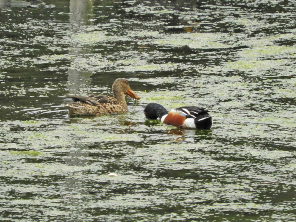 採餌に忙しいハシビロガモ 2026/03/20 長浜公園 潮が引いて浅くなった汽水池は繁茂した水草が水面を覆っていました。その水草の中をハシビロガモのつがいがしきりに餌をついばんでいました。旅の途中で寄ったのでしょう余程お腹がすいているようでした。 |