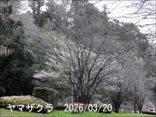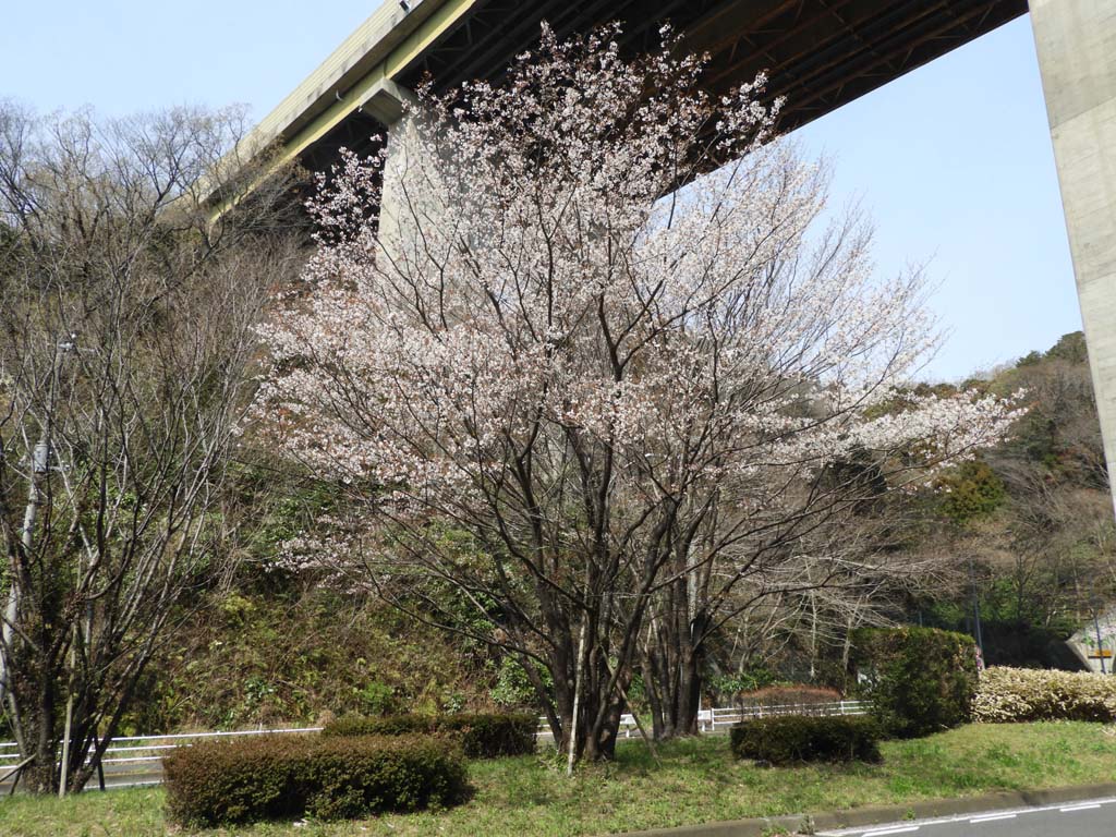 横花のソメイヨシノは22日に開花しました。一方、ヤマザクラは金沢自然公園や二本松トンネル付近で20日に咲いていました。右は二本松トンネルの釜利谷側のヤマザクラです。ヤマザクラは赤味を帯びた若葉が出るのと同時に花が咲きます。それは私の子供時代の郷里と、また勇壮な和歌を思い出しました。