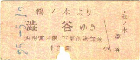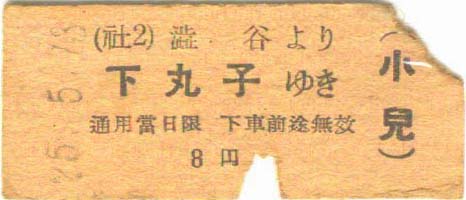 昭和25年5月12、13日 鵜の木から渋谷、13円。 渋谷から下丸子(小児券)8円。 |