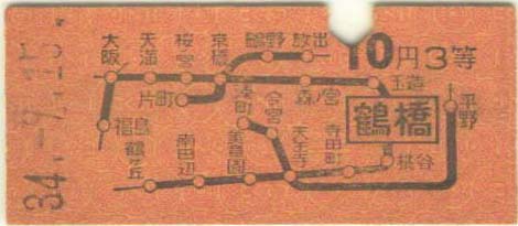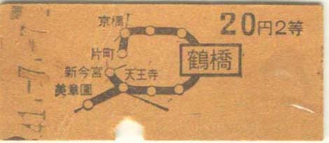昭和34年 昭和41年 鶴橋駅発売の普通乗車券 10円 20円 |