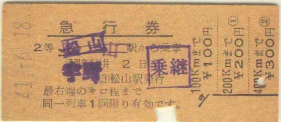 同上。 乗り継ぎ急行券300円。 | |
