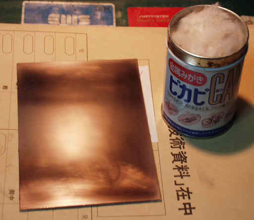 次に銅箔面の洗浄です。私は、まず金属磨き(脱脂綿にピカールを染み込ませたもの)で