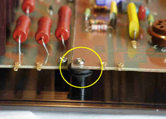今回は、プリント基板式としました。EQアンプでは微小信号を扱うため、S/N(シグナル・ノイズ比)向上に気を配る必要があります。設置の環境にもよりますが、電源ハム以外にもハウリングやマイクロフォニックノイズに対しての対策が必要です。オリジナルのマランツ#7では、真空管をゴム(インシュレータ)で浮かして振動防止を行なっていたりします。そこで今回は、プリント基板ごと、ゴムで浮かして対策が取れるようにしました。