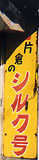 片倉のシルク号<撮影日> 1998年12月 <撮影場所> 埼玉県行田市 自転車屋さんに掲げてありました。 東京の八王子に片倉というところがあります。 日本の輸出品の主力が絹(シルク)だった頃、 絹の集散地だった八王子から横浜港まで、絹を運んだ 道が「絹の道」(日本のシルクロード)と呼ばれていました。 片倉はその絹の道沿いにあった町です。 ということは、これも「スオード号」と同じネーミングなのかも しれません。(「片倉」違いだったら失礼) | |