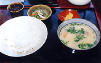 【店名】 ? 【住所】 福岡県甘木市秋月町 【品名】 だんご汁定食 【価格】 ?円 【訪問】 1990年 | |