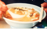 | にぼしのだしが利いた素朴な味で、 具もたっぷり!(にぼしも入っていた) 豊後竹田駅前にあった食堂だったが、 残念ながらなくなってしまった。 (写真不鮮明で失礼!) | |