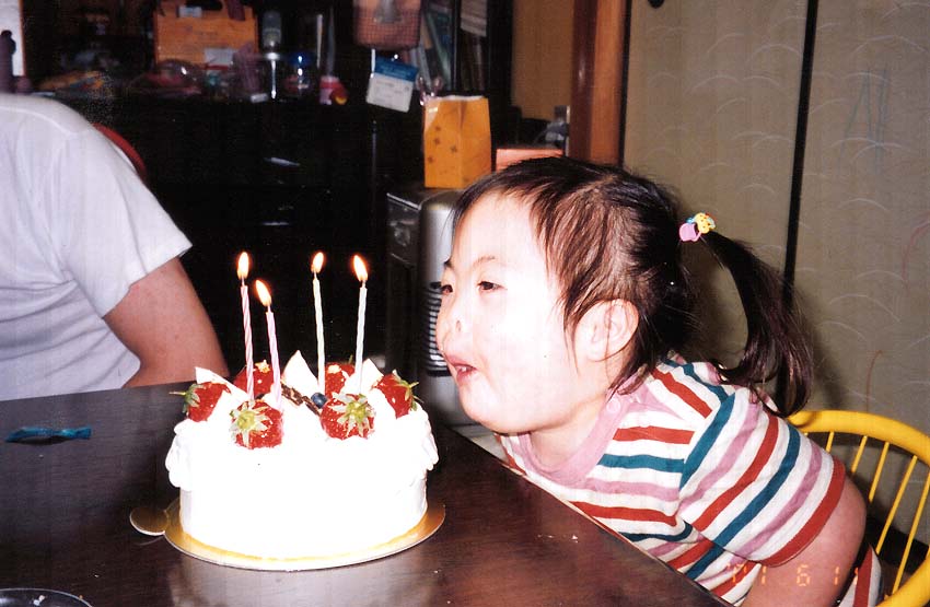 H12.6.11 3歳の誕生日は岸和田市民病院で迎える H12.6.14 退院と誕生会を自宅で祝う「いきなりの食欲」もう大丈夫 誕生日におばあちゃんに自転車もらってごきげん H13.4 今年から幼稚園へ”ちょっと不安げ” H13.6.11 4歳の誕生日