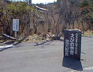 温泉のもととなる大地のパワーをしっかり観察したら、次はその恵みにあずからねば‥‥。賽の河原から少し下った道路沿いに、えびの市営露天風呂がある。渓流を塞き止めて露天風呂にしているのだそうだ。しかし、私が訪れたときは湯温が低くて入ることができなかった。‥‥残念。