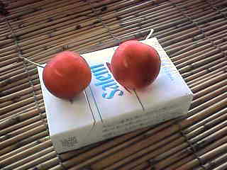 ![]() 2品種のサクランボを、化粧箱にパックを使わないでバラ詰めしました |