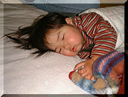 ![]() こんな寝相なので、 ぴらぴらはすぐに行方不明 (1歳10ヶ月) |