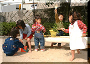 | それでも、とりあえず笑ってすごせる今がある。 それは、とにもかくにも、元気に育っている菜月がいるのと、子育てを一緒に共有してくれる友達がいるからだ。 ちょうど今から1年前。 それは、たまたま公園で会うようになった何人かのご近所さんだった。 最初はぎこちなかった。 が、話してるうちに、メイルを送ったりするようになった。 子供の年も近かったが、私たちの年齢もまた近いことがわかった。 そして、仲よくなった5人でメイリングリストを作った。 「明日公園に行く?」 というような話から、 「小児科ってどこ行ってる?」 「1歳半検診って何をやるの?」 というような話。 育児の話にとどまらず、料理のレシピ、パソコンの使い方、自分の話、好きなこと、悩み、愚痴、...今ではなんでも話しあえる。 時には、シフォンケーキの作り方を教えてもらったり、みんなで集まってたこ焼きを焼いたり、動物園に行ったり、買い物に行ったり... 5人の母親に8人の子供連れ、で出かける。 |