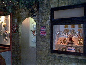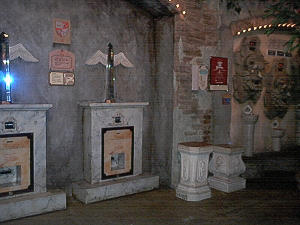 マカロニ広場の通りの1つ工房通り。 その名の通り、工房が連なっています。 鍛冶屋 工具や謎の壷があります。壷を覗いたり、 工具や竃に手を入れたりしたものです。 市場通りの名残? タイプライターがチーン!が懐かしい。 仮面屋とオルゴールのカリヨン ドアノブが・・・ 食器屋と壷 鍛冶屋の隣は食器屋です。 マリオネット ドアノブで・・・ 時計屋Orolog 呼び鈴をビビーッ 遺跡の広場 青い鳥のサテライトですね。