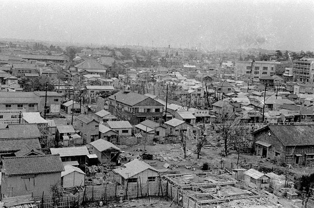 写真右上が新潟県信連のビルで、その向こうが新津邸。左上には法音寺が見える。