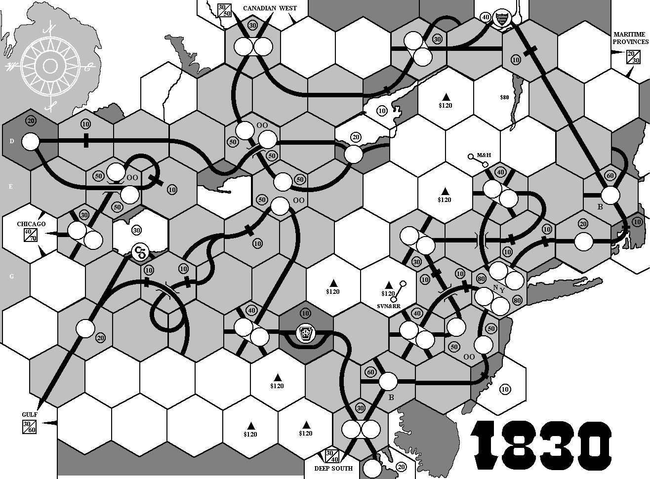 更に言うなれば、列車制限を考慮しても5社起きていればDまで購入可能です(6.2本でも5社必要)。その時の6.2本の理論上最大収益は$700、1本では$380ですが、D.1本の理論上最大収益はNYNH、NYCは$1290、PRRが$1300、C&Oが$1320、B&O、B&M、CPR、ERIEが$1330になります。