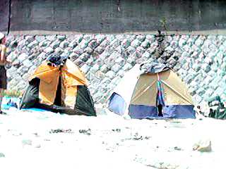結構のんびり走ったので、現着まで3時間くらいかかりました。早速、海辺にテントを張り、途中で買った酒類を海で冷やします? はっきり言って冷やしたつもりが全然冷えず(当たり前か)あまり美味しくは....