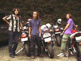 99年8月12日、道志川までツーリングに行ってきました。総勢5名のツーリング、みんなビッグバイクばかりなので (私のγを除いて最小排気量が600cc) 少々心細い 写真は同行の友人たち。