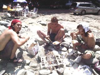この日のツーリングの主な目的はバーベキュー早速、かまどを作り、肉と魚を焼きました。 写真は同じく同行の仲間たち