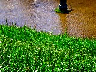 ご婦人のウオーカーが「この川は運河なんですか?」むかし氾濫したことがあるというから運河ではないだろう。