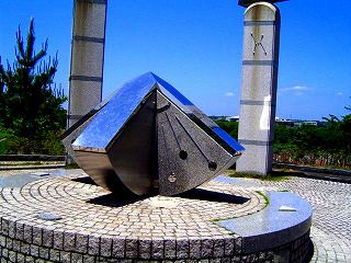 時刻は12時近くになっている、まもなくスポーツセンターなどが広がる施設にやってきた。体育館やフィールド、野球場などに囲まれて小高い丘になっている。その丘の上に日時計が作られていた。
