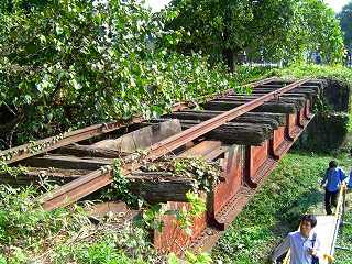 やがて地図に葛川橋梁と書かれた場所にやってきた、長さ20mくらいだろうか、長い年月使われもせず風雨に晒されたためであろう橋げたは錆び枕木は朽ちかかっている。