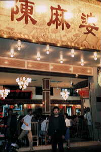お腹がそんな悲惨状況になろうとも、初日に行った麻婆豆腐の発祥の店、「陳麻婆豆腐」(最上段の写真)の味は最高に辛くて本当に美味しかったですよぉ〜。日本の中華料理と違うのは、辛さもそうですが、特に香りが強い点です。麻婆豆腐の’麻’の字がそれを示しているらしいのですが・・・。慣れるまでは気になるのですが、毎日食べてるとそうでもなくなってきて、しまいには食欲をそそるようになってくるから不思議です。お土産に、その店で売っていた麻婆豆腐のレトルトパックを買ってきて、実家で何度か作って(自分で!(笑))食べましたが、とっても美味しかった!!もっとたくさん買ってくれば良かったと少々悔やんでいます。