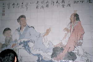 あとは、唐代の詩人杜甫が住んでいた場所を公園にした「杜甫草堂」に行きました。左の写真がその銅像ですが、本当かどうか、とっても痩せています。高校生くらいの時に習った覚えがあるけれど、杜甫は唐の時代の有名な詩人ですよね。科挙で採用されたお役人だったそうですから、頭は抜群に良かったんでしょう。