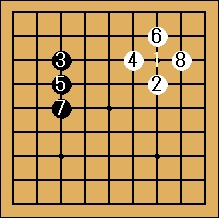 白8で黒1を囲み黒1が取られた所です。