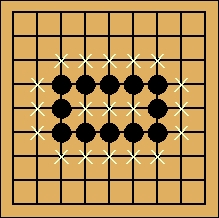 石のすべての呼吸点に敵が来ると取られてしまいます。