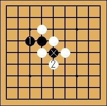 黒1に対して白2と隣に打つのは危険です。