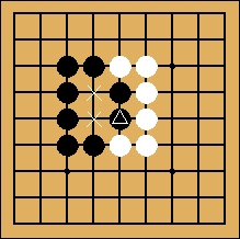 下図がその例で、黒は、△に置くと囲まれてしまいます。