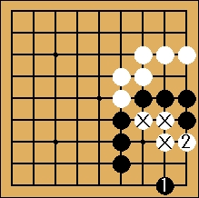 白2の時点で、白は3箇所黒は2箇所で取られます。