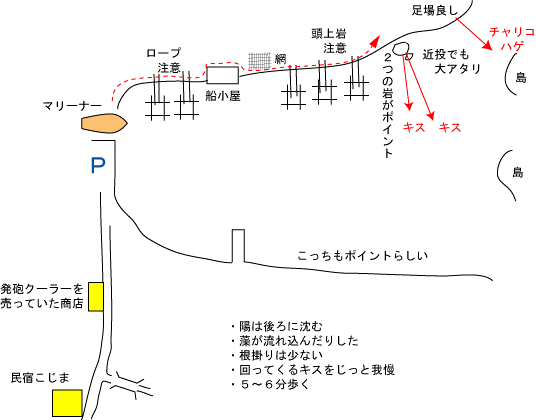 | 対馬最後の夜 賀谷の民宿「こじま」09295(5)1118に客はオレだけ 明日は最後のチャレンジだというのにうれしくてワクワクで寝付けない 【6月4日】 何もかも予定通りに対馬に着き、空港レンタカーのサニーカルフォルニアにクロネコで送った荷物を詰め込んで尾崎に向かったのは一昨日の事 尾崎は、いかにもキスよりマダイポイントという波止 持ってきたキャスターを引っ張って波止先へ向かう 雨は上がって曇天なれど、一応カッパを着込む 外側に向かって1投 底は深い オモリの着底を確認 すこしサビくと手にアタリ! ベラだ。ベラが多いと前知識はあったがベラ・ベラ・ベラのオンパレード 湾内はどうかとキャスト。スッコ~ンとキスが出てきた サイズは22・3㎝そんなに大きくないが太い。そして美しい! そんなサイズを5匹釣り上げた 外側ではハゲ・チャリコどれも25㎝程 そしてトラギス・キューセン、日が暮れてホタルを付けマムシエサに代えるとド派手なアタリに27cmのチャリコや28㎝ハゲがいい引きをして上がってくる その後、車内でアタリ見ながら寝られる所と下見していた箕形の埋立角をポイントへ しかし3投して3投とも高切れ 次に今里の方へ、中学校の角をポイントとしてサオを2本出して真夜中1時のディナー 福岡空港でチャンポンをお昼に食っただけなので腹ペコ 米を炊いてラーメンを食す ごはんは少し水が多かったのでベタついていたが無茶苦茶うまいメシ 腹にモノが入るといっきに睡眠モード突入 ![]() 【6月5日】 目が覚めると5日の7時半 小学校の先生が道を掃除している 2本出していたサオのリールを巻く 1本は何もナシ もう1本は何かが付いている 上がってきたのは…アナゴ 通りがかったおばちゃんが「キスゴか?アナゴか・・・」「キスゴじゃったら向こうの波止が良い」と教えてくれる そりゃそうだ何も分らず夜中にキャストしていたところはとんでもない浅い牡蠣だらけの所でした 車を移動して新しい波止でサオ2本出す ここでもキスの22・3㎝が湾内で2匹 同サイズのチャリコが釣れるが長居は無用と大きなタカノハが悠々と足元を泳いでいる美しい今里を後にする 次に北へ北へと仁位方面へ まずは今夜の宿探しBHつたやや民宿なんとかとあたるがどこも満室 国道沿いの民宿海幸のおばちゃんが「いいヨ」とOKサイン で、少し戻って賀谷の期待のポイントへ 車を奥へ奥へと進め、着いた所は行き止まりの小さな造船所 ちょうど満潮時だったがスパイクならと靴を履き替えてクーラー・バッグ・ロッドケースみ~んな持って歩き出すがハードなことハードなこと 途中の船小屋の木の板は腐りかけで足を踏み外しそうで、岩場で頭をぶつけそうになりやっとポイントらしき所に荷を降ろす ![]() 太陽も燦々で汗がジトジト でも海の心地よい風が気持ちよい! ここでもトラギス・ベラが・・・キスも釣れるが単発 辛抱強く待っているとキスが回ってきて24㎝がダブル! そこから突如キスのラッシュが始まった! アタリも無くキスが上って来る 16時頃だった キャストしたサオにすぐアタリ!ええ引きや! こんな感じでキス釣るのって最高! 釣れたのは24㎝と28㎝のダブル! これやがな!こんなん待ってたんやんか! 22㎝クラスから24㎝そして28㎝ だんだん大きくなってきたやんか でもその後19時までねばるが大きなピークは来なかった 宿に戻るまで有名な和多都美神社前へ えらい入江で波静かな所 背後は神々しい神社 そしてこの入り江の奥にある舟屋はいかにも海を渡ってきた渡来人たちが立寄ったであろうという神秘的な場所 ウグイスが鳴き、夏の虫が鳴くこの地から静かな海へ15号と少し軽めのオモリをキャスト すぐ1投目に23㎝程のキスが来る その後も当たるがピンギスが多い サオをそのままロープで繋ぎ一度宿へ戻り風呂に入る 賀谷で真っ黒になり塩が噴きあがった腕に風呂は気持ちいい! 再び和多都美神社へ戻りサオを上げると、うひっよぉー!ヌタウナギ もちろんハリスを切ってグッバイ 30㎝は無理やなぁと翌日に期待して宿へ 5日はこれにてEND 【6月6日】 6時に目が覚める 眠ったのは1時を回っていた 相変わらずワクワクの夜で台所へビールを取りに行きやっと寝たしだい 起きてもスッキリしない 素泊り3500円を払って仁田方面へ出発! しかし仁田はどこがポイントかよく分らない 「一本松」と言ってもどこやねん?けっこう奥まで行って小波止で4・5投するがアタリもない アタリはないが今日も天気は良い! 青い海と新緑の山 ええもんや! その後、御園~志多留と釣り歩くが22~24㎝のキスが散発で、どこの波止も外向きはベラが多い 途中で重くなるのはエソの40㎝で、これで2匹目 キスが多いからエソも多いのか・・・ あまりパッとしないのでこれまでの最良ポイントである賀谷へ戻ることにした 峰町の山沿いに小川があって車を止めメシの用意 カレーを食し、コーヒーを入れる 冷たいメチャ綺麗な川に疲れた足をつけ冷やす いや~ぁ海もええけど、この自然な川も良い! キスも有名やけどこの対馬の川のヤマメや
