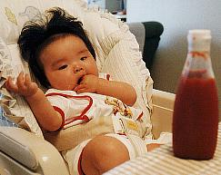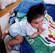 じっとしていられない最近のあゆちゃん。 寝返りを覚えて、腹這いの快感を知る。(なにが快感なんだか…) なんでもいいけど、じゅーたんがヨダレと吐きこぼしのミルクでベタベタやで。 |