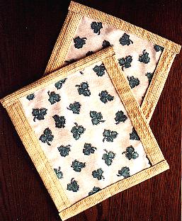 ハギレを貼り合わせた割には、オシャレだ。 「ティーマットの作り方」 だが、勝負はここからだ。 この上に茶碗だの湯飲みだの乗っけるか?… そんな日常の食卓風景に埋没させてしまっては、 マダムの名がスタる。きっ。 |