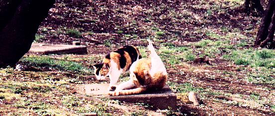 編集長が家人とともに近所の公園に花見に行った折のことである。 満開の桜の花の下、行楽シートを敷き、デロリンと寝そべりつつ 花見酒に酔いしれていた時… そのお隣りでは、猫夫婦が仲睦まじく花見に興じておった。 それはともかく… ヒトが夢見心地でお酒を舐めているその隣りで おケツの穴など舐めるのはやめてくれないだろうか。