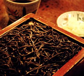 とある日のお昼ごはんは黒い盛り蕎麦だった。
