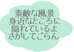 眼をぱっちり開けてよ〜く見てください。 一片の詩でも書きたくなるような… そんな絵みたいな風景がきっとあるはず。 たとえばこんな風に…
